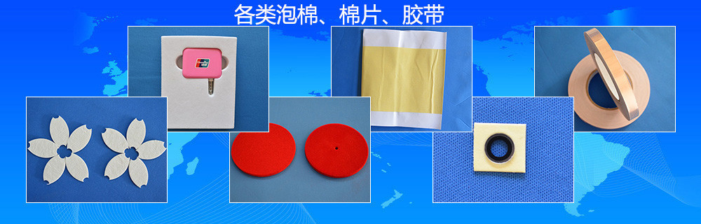 膠貼產(chǎn)品:各類防震膠墊、各種顏色厚度EVA/PE/CR/SBR泡綿、防火泡棉、電子PE、回力膠、海綿、(相機)防漏光海綿、(紅)綠膜雙面泡綿、吸音棉、防塵網(wǎng)、不織布、絨布(紙)、CD門防塵布,(音箱)羊毛氈、(硅)...............